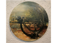 In some of the landscapes there are elements of decay, which represents the transience of our existence on earth. The remains of skulls (objects of death) serve as a reminder of the emptiness of life and the futility of human achievement. The use of decaying remnants, such as rusted metal and wire serve as a metaphor for the preservation of the land and memories.